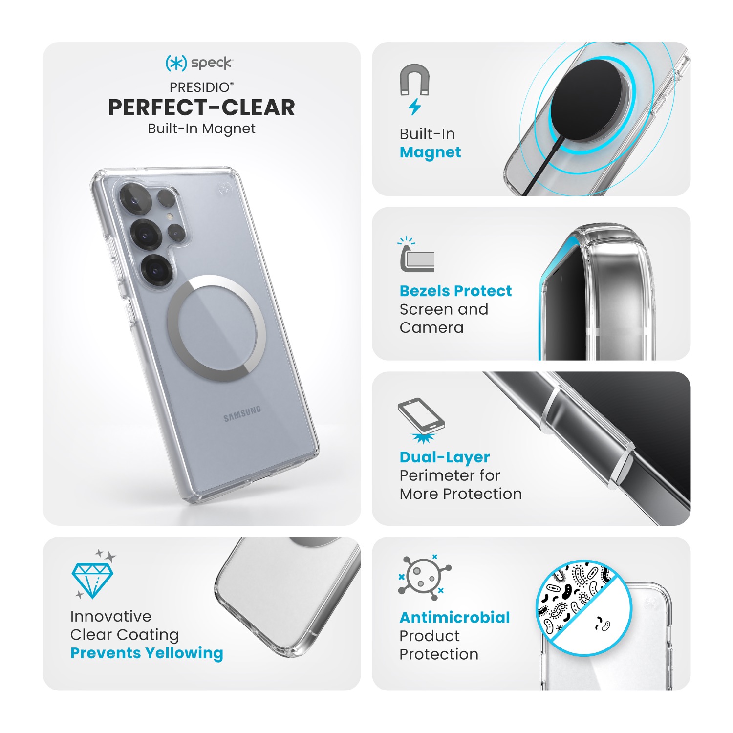 Our Presidio® Perfect-Clear Magnet case for the Samsung Galaxy S25 Ultra is the clearest case we have ever designed. This magnetic case ensures proper alignment with Qi and other wireless chargers while securely connecting to magnetic accessories like wallets, battery packs, and car mounts.