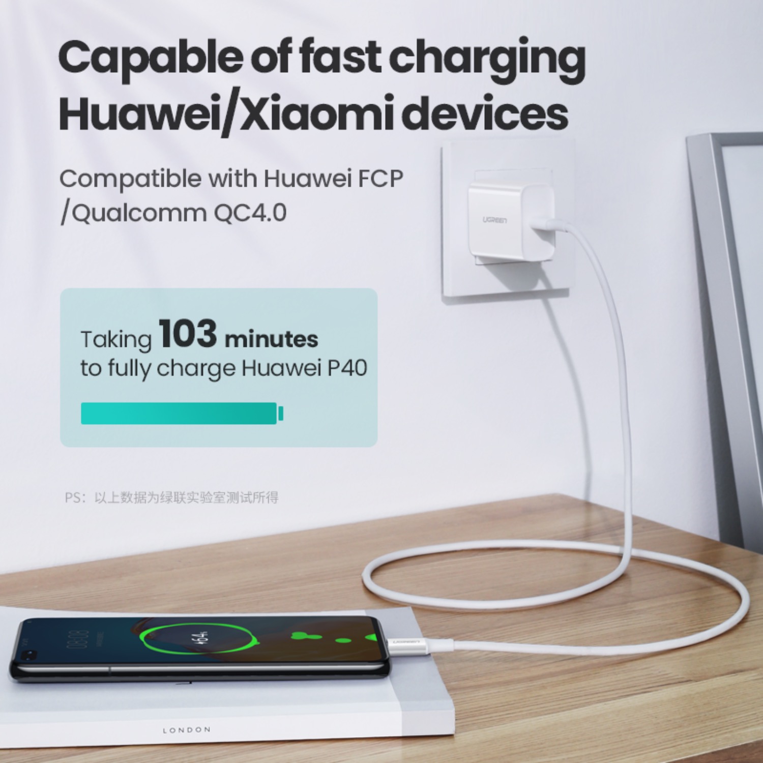 Speed up your charging with UGREEN Type-C to Type-C 100W charging cable.
