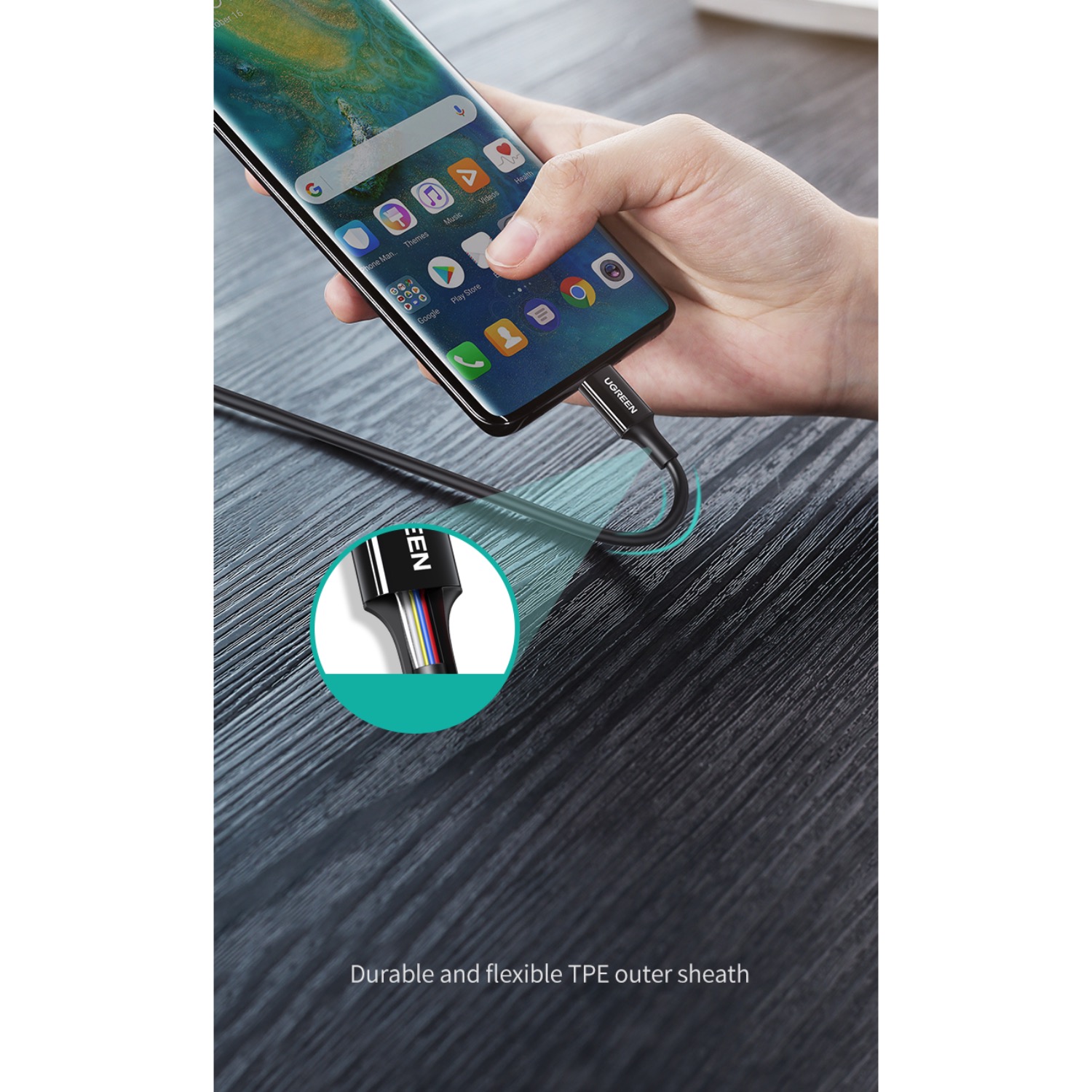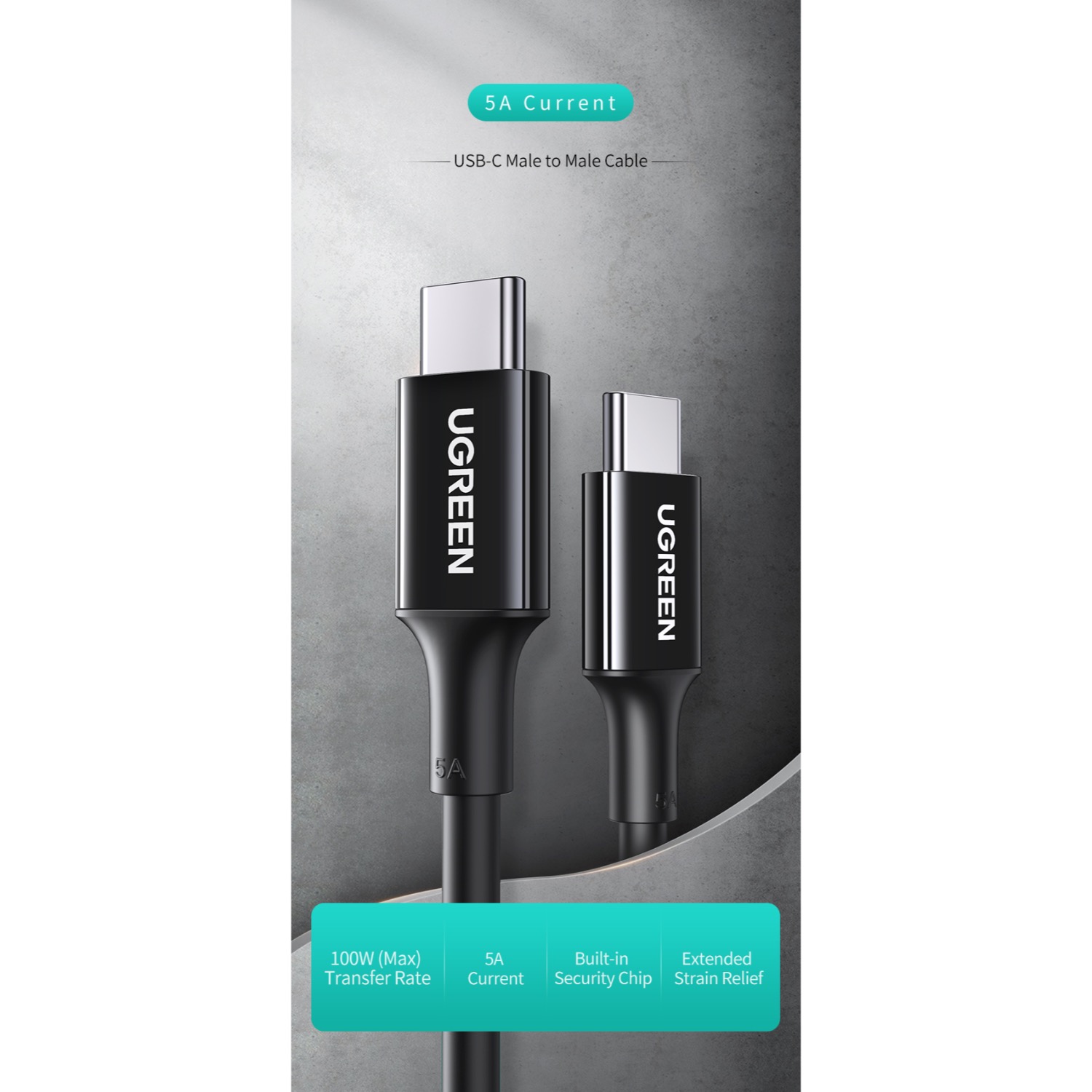 Speed up your charging with UGREEN Type-C to Type-C 100W charging cable.