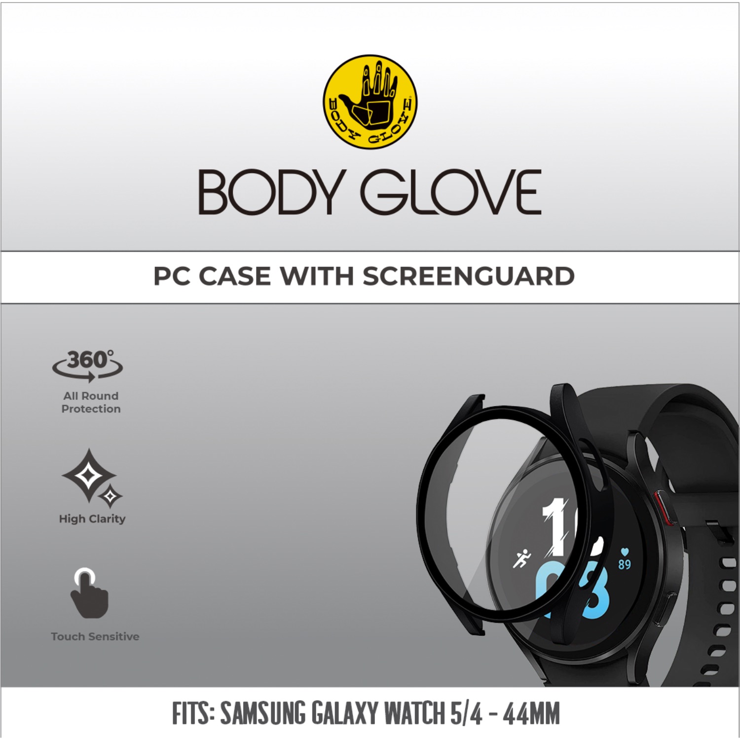 This Body Glove PC Case with Tempered Glass Screenguard for the Samsung Galaxy Watch5 / Watch4 44mm provides overall protection from scratches and scuffs whilst perfectly preserving the touch sensitivity of your device.